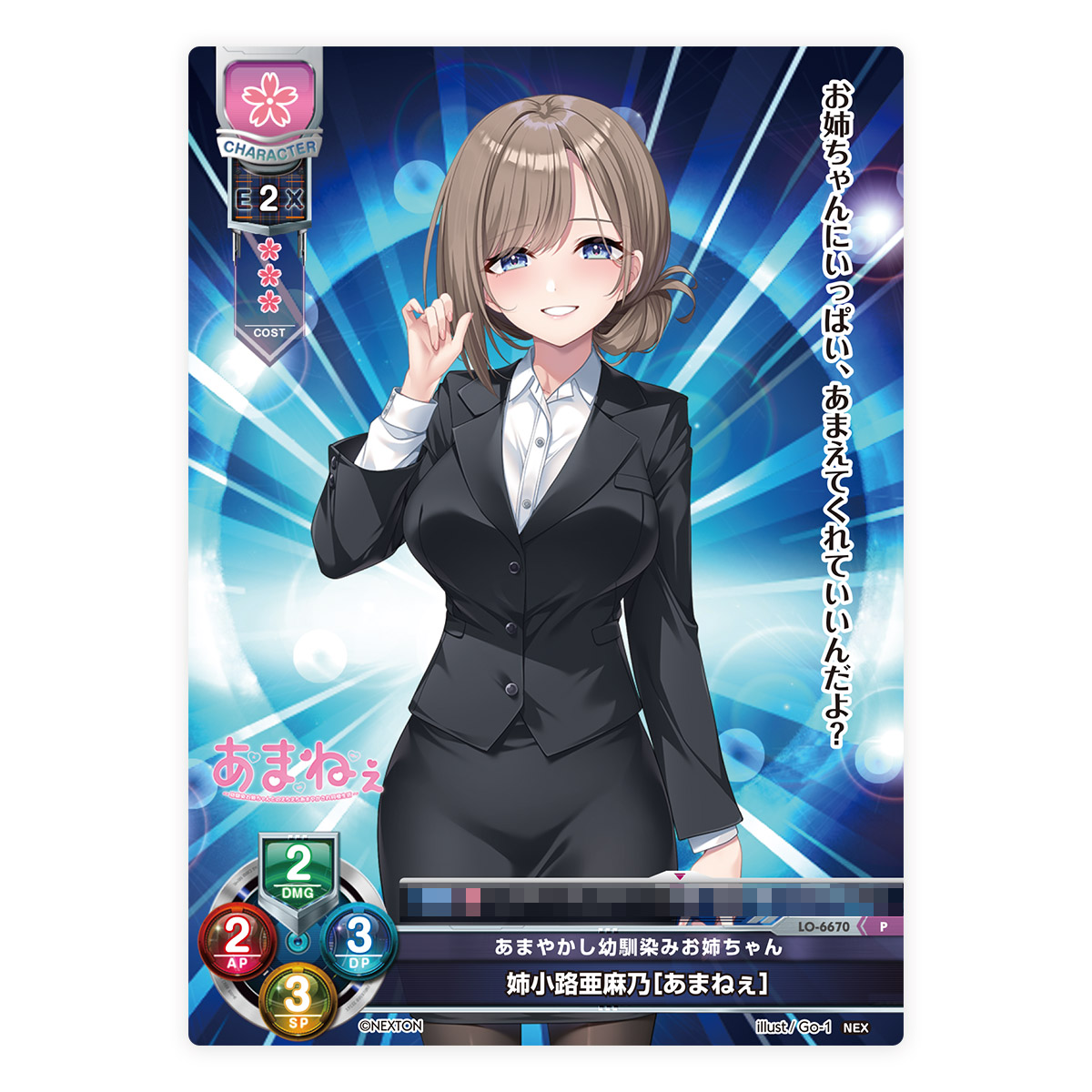イベント会場にて当ブースの商品をお買い上げの方に、1会計につき1枚、LYCEEプロモーションカード「あまやかし幼馴染みお姉ちゃん 姉小路亜麻乃[あまねぇ]」をプレゼント!